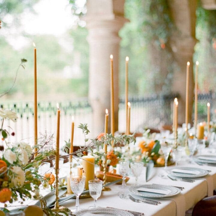I love the touch of adding a little gift to the plates like candles that your guests can take home.