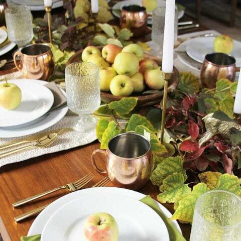 Go with something that inspires you during this fall season, such as the changing colors of branches, and add elements such as apples and candles to bring in more height and texture.