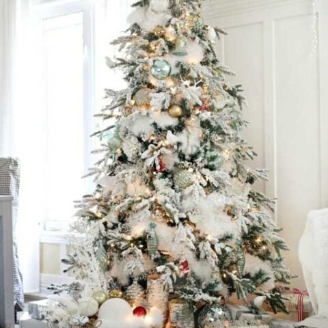 Here’s another beautiful white-flocked tree option.