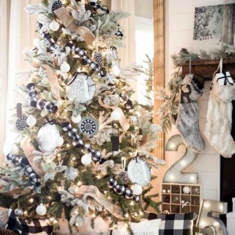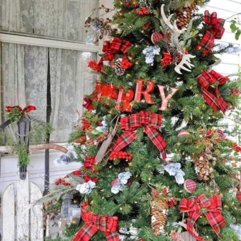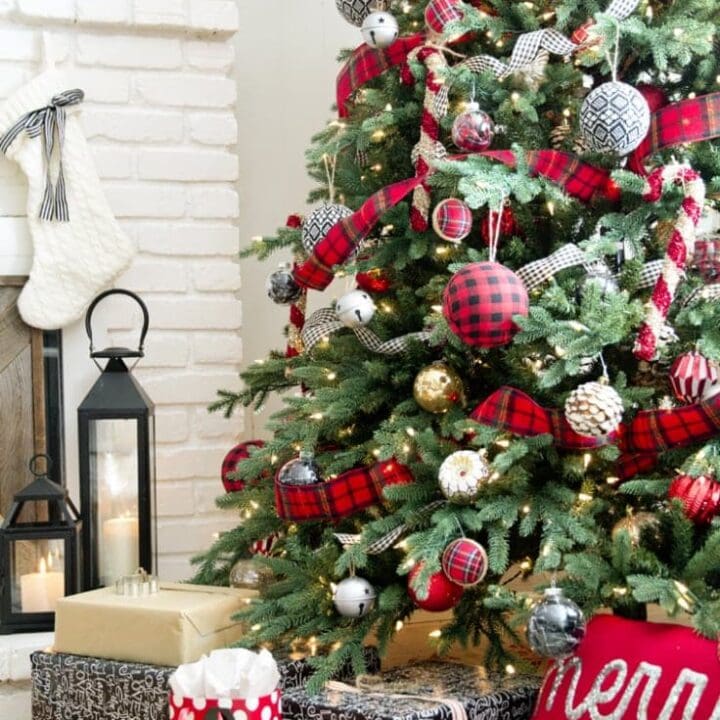 Buffalo check is so popular and it looks amazing on Christmas décor, especially on this tree as a garland!