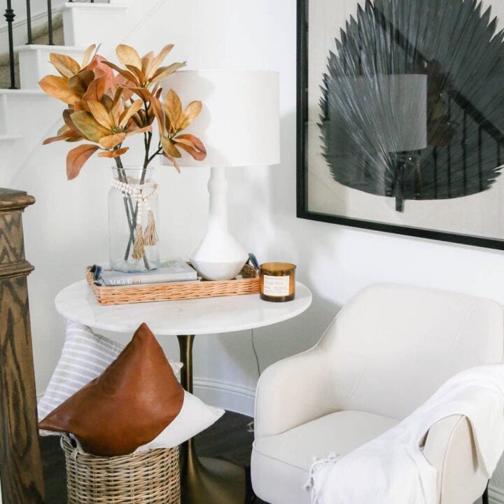 Creating a cozy Fall corner like this one is a great way to nestle seasonal touches into your entryway.