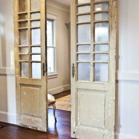 These repurposed doors add a vintage and aged look to the space.