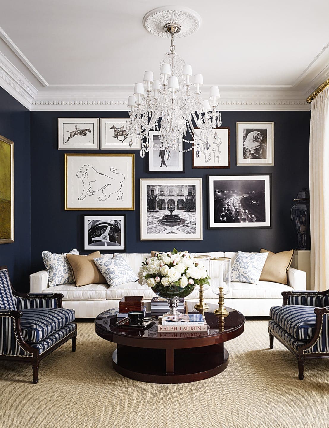 The Ralph Lauren decorating look is making a quiet return, with deep wood tones, leather touches, and layered plaid or pinstripe fabrics throughout the home.