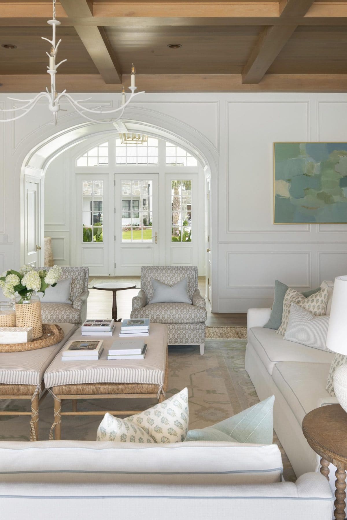 The New England-style trend adds that crisp, relaxed vibe with white walls, blue accents, and natural textures like jute or rattan mixed throughout.