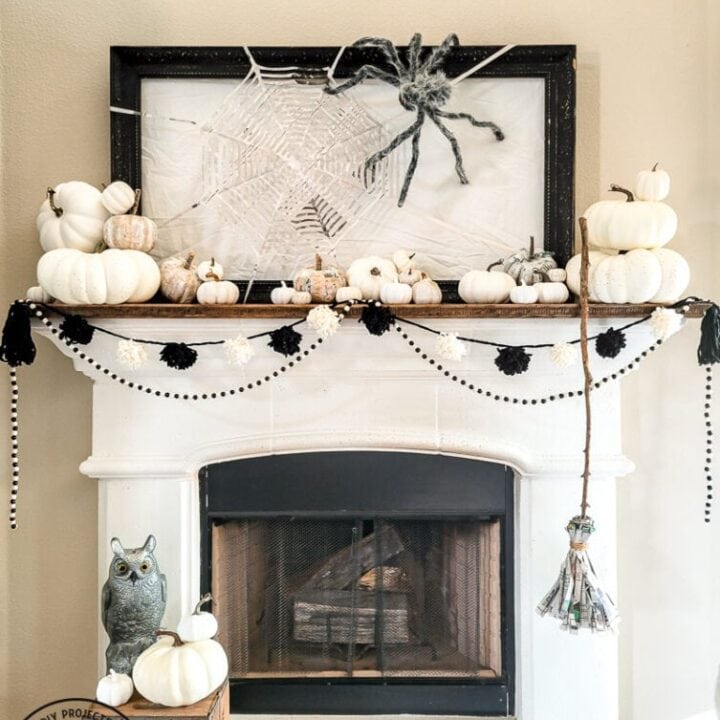 I usually start thinking about my Halloween mantel decor ideas as soon as the end of September to give me plenty of time to gather all my favorite decorations and start playing around with different looks.