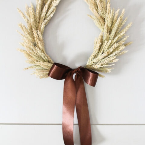I love the simplicity of this wheat wreath with the brown satin ribbon. Easy to add into any fall decor setting.