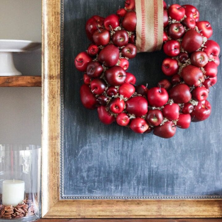 This is such a fresh look. You can use faux apples to make the wreath usable year after year.