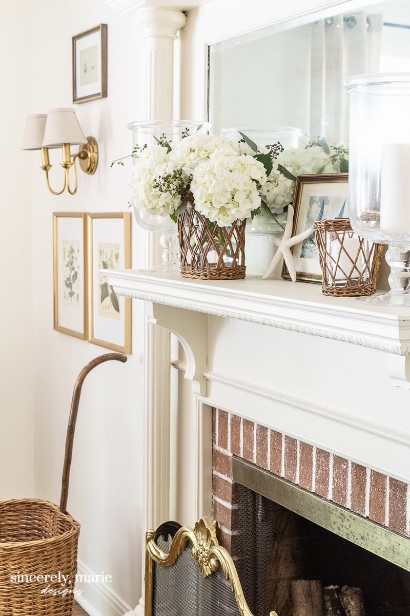 Summer calls for bright and cheerful arrangements with sunflowers, hydrangeas, or wildflowers that make your living room fireplace decor feel warm and energetic.