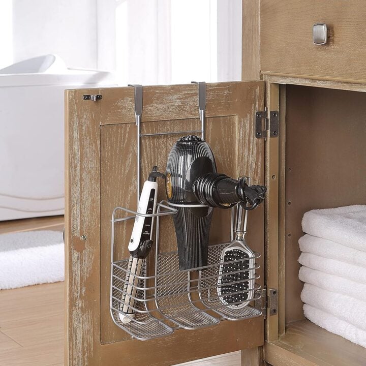 Add some hooks or small baskets, and you’ve got a place for your hairdryer, cleaning supplies, or other odds and ends.