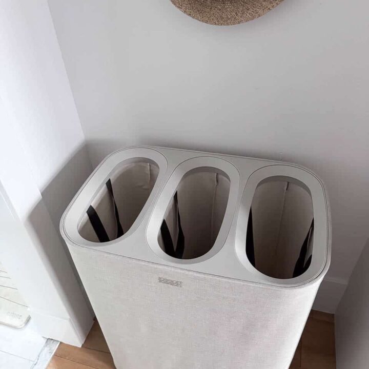 Adding a hamper to your bathroom helps keep dirty clothes off the floor and makes laundry day more manageable.