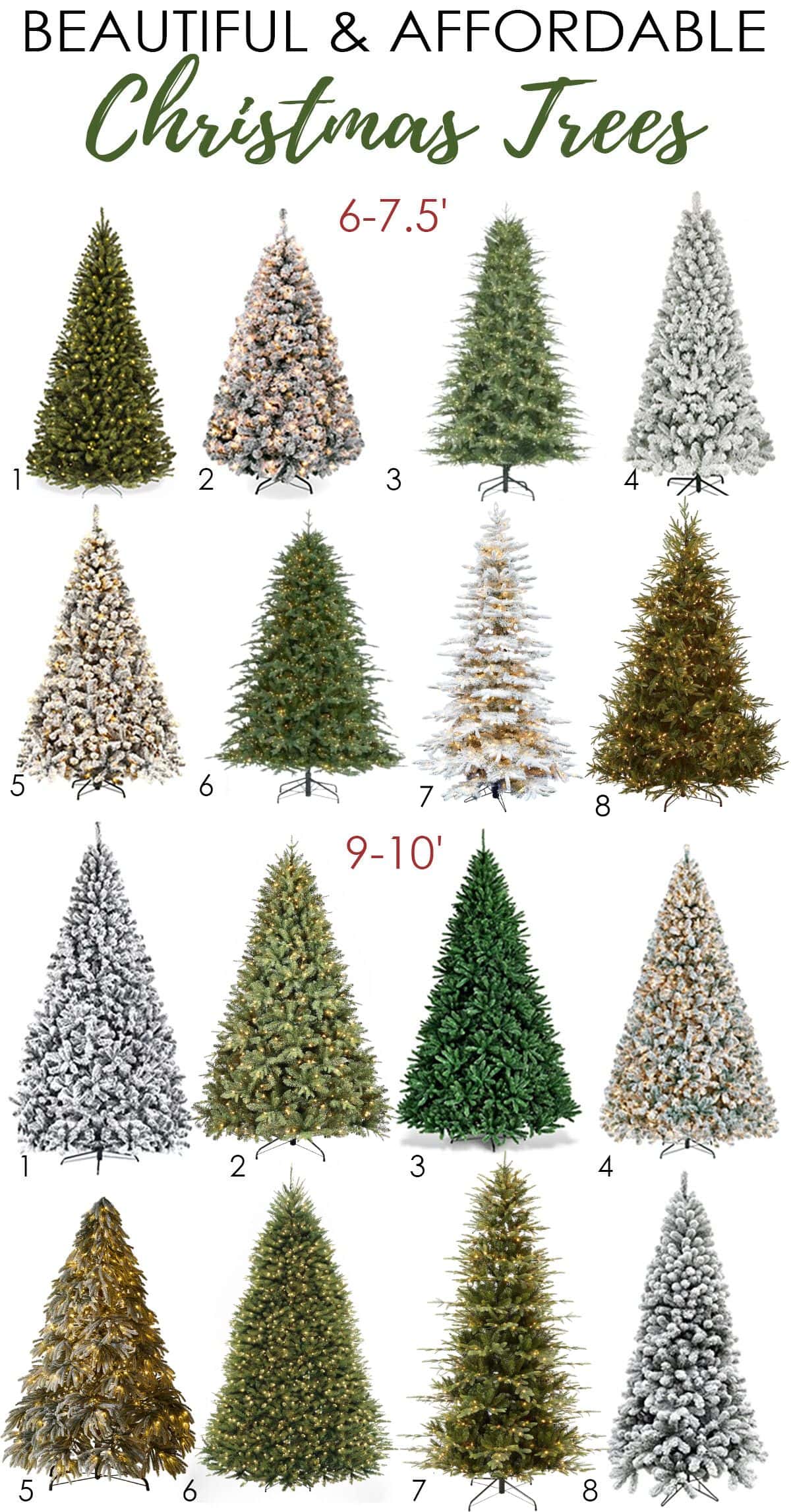 Sharing a collection of the best affordable Christmas trees that are very realistic looking and affordable as well as multiple heights depending on how tall you need your tree. Flocked as well as evergreen-looking faux Christmas trees that you can use in any room of your home.