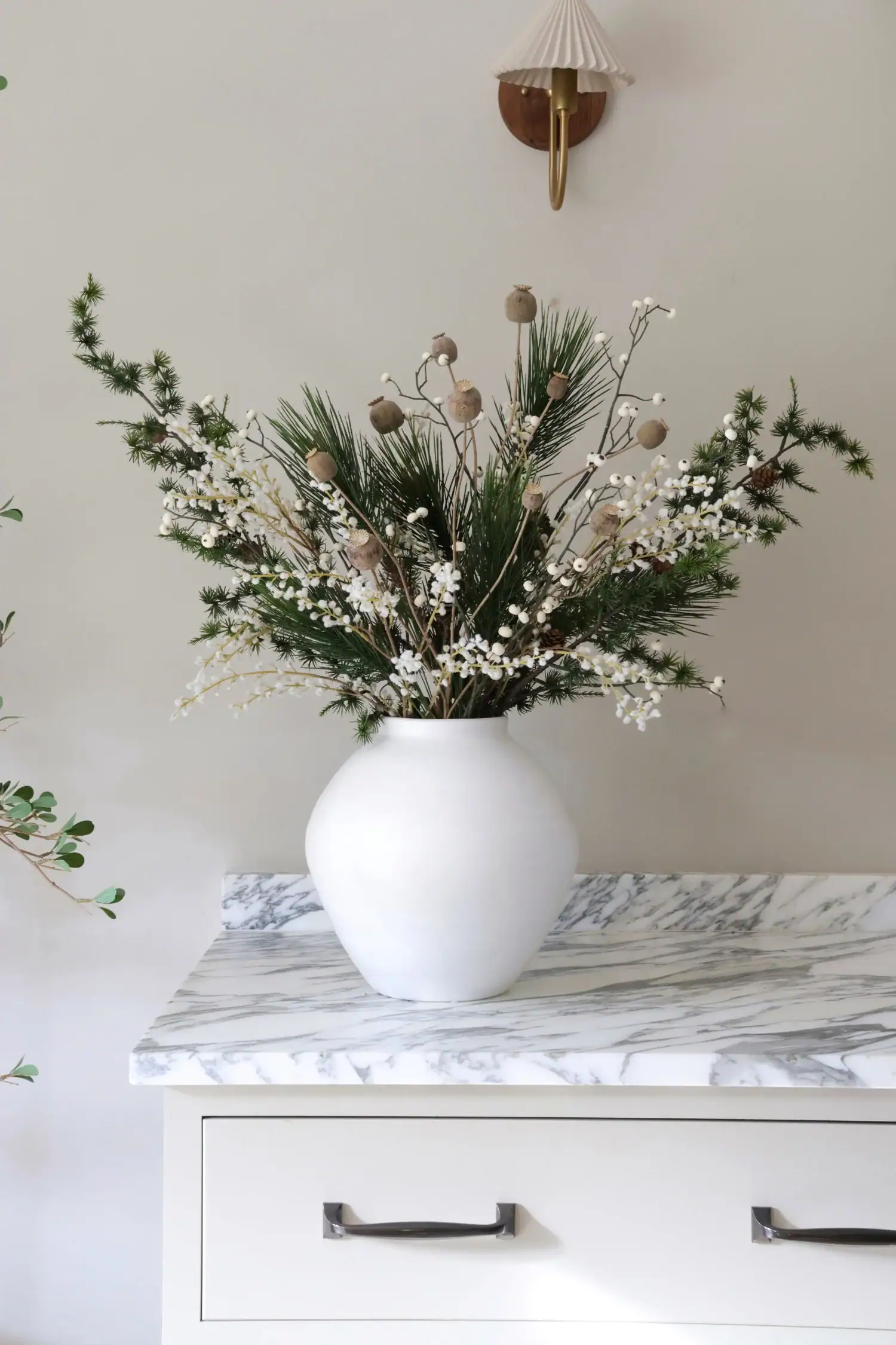 Fake flowers make winter decorating easy and fun, especially when you want your home to feel calm and welcoming after the holidays.