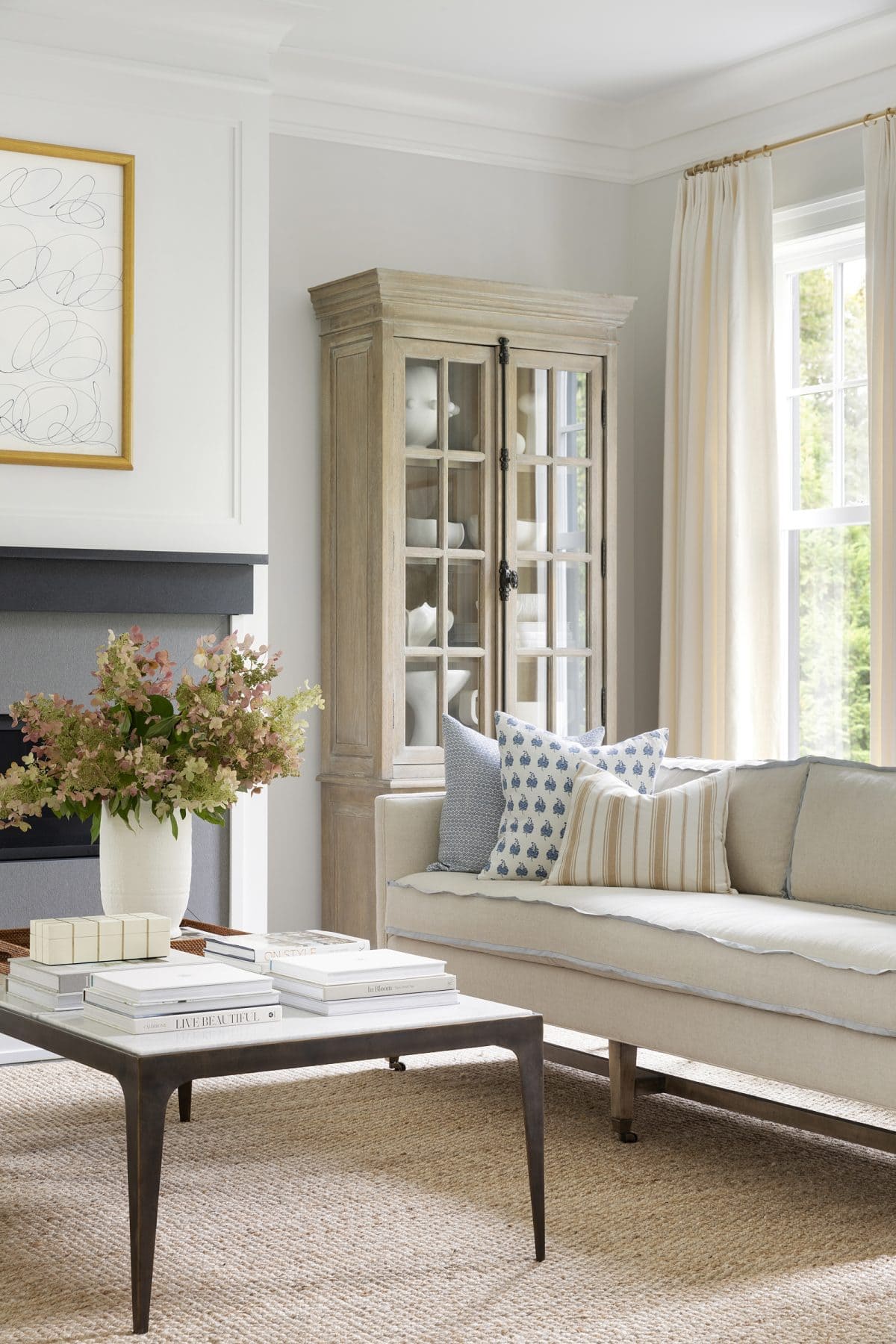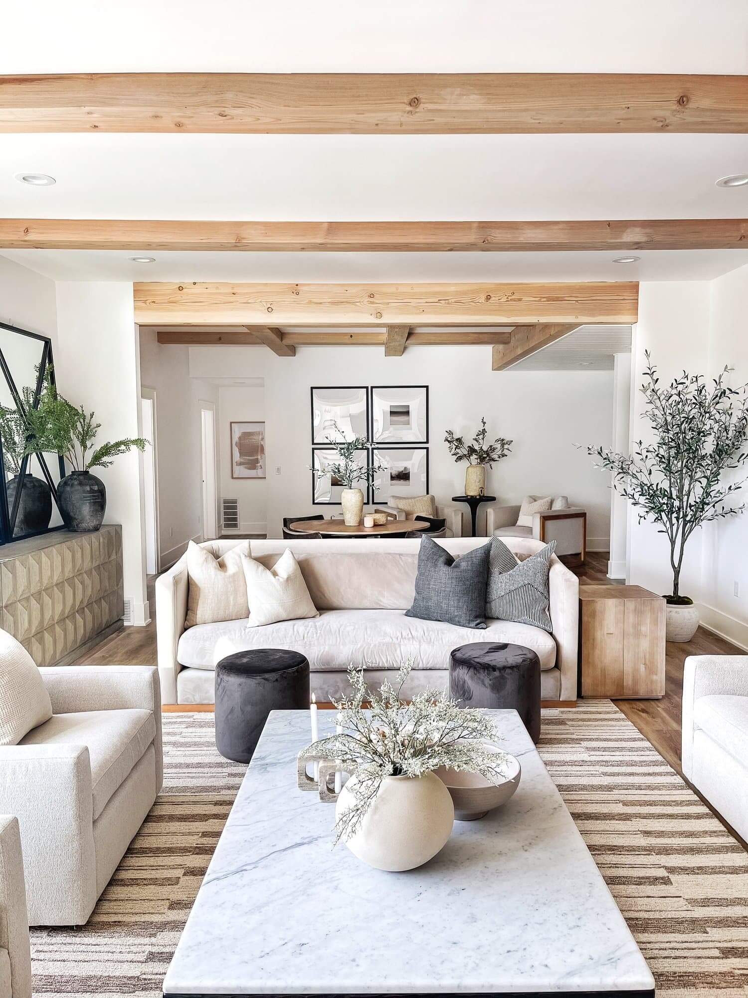 Natural materials like wood and rattan, and jute bring warmth into a neutral room while adding that organic feel that makes everything seem more inviting.