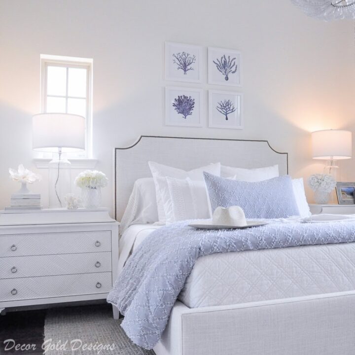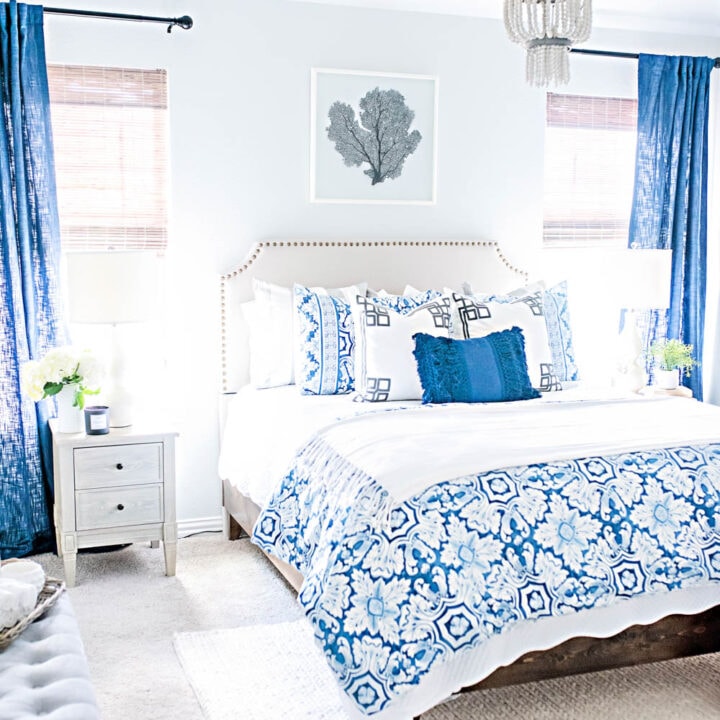 So, I’m going to share some classic blue and white bedroom decor that’s easy to layer, simple to style, and always feels light and welcoming.