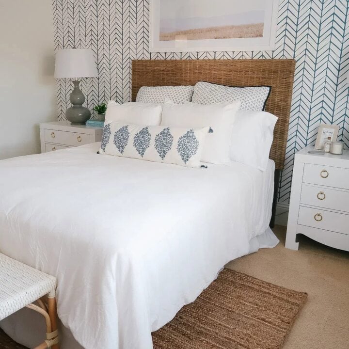 It’s the perfect mix of coastal charm and chic sophistication for a guest bedroom that stands out.