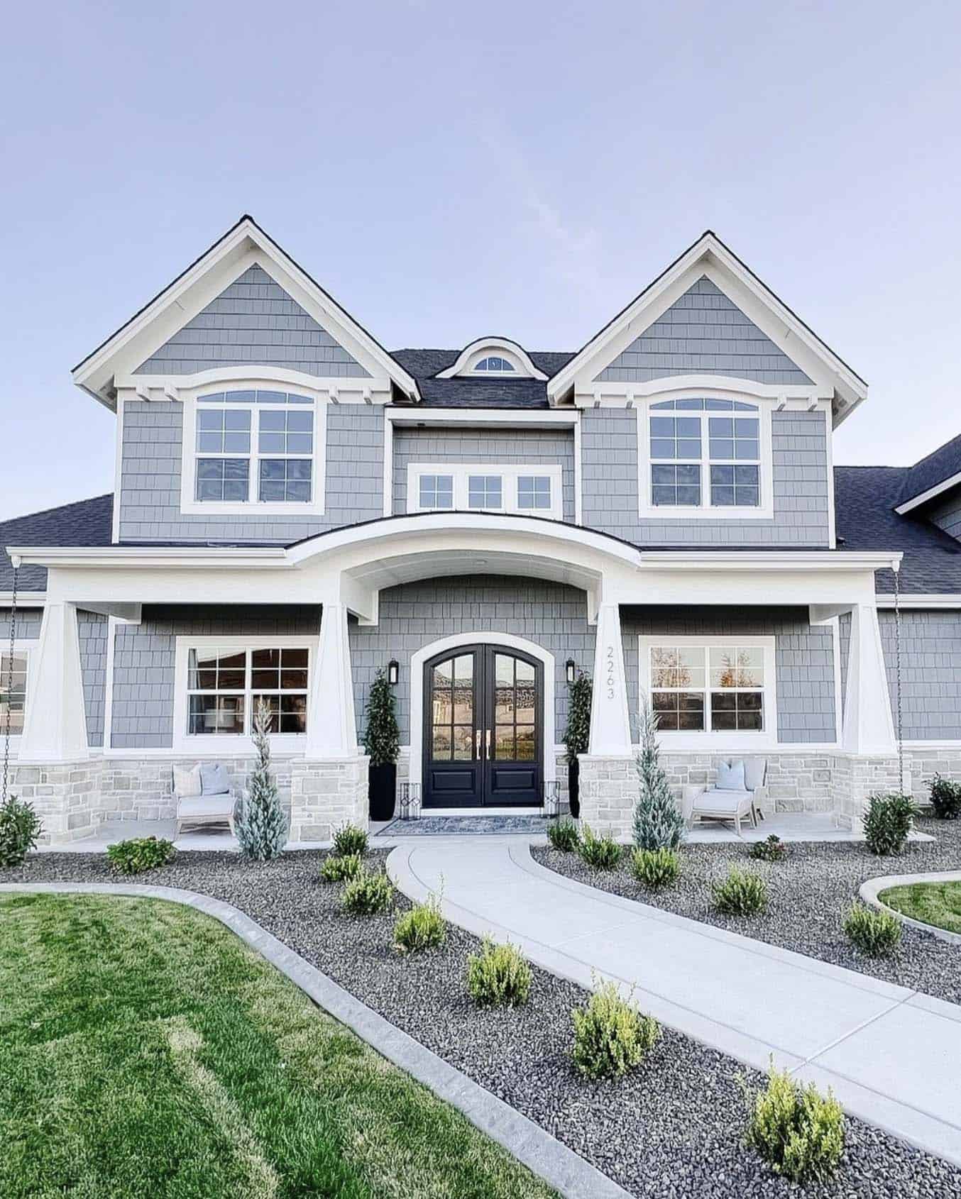 Color schemes that mix cool and warm tones, like a pale gray-blue exterior with warm white trim, add depth and dimension to your home beautifully.