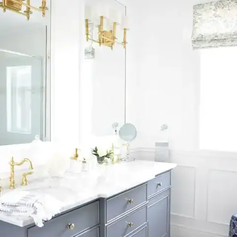 Painting your walls and cabinets in soft coastal colors is one of the most affordable ways to transform your bathroom space completely.