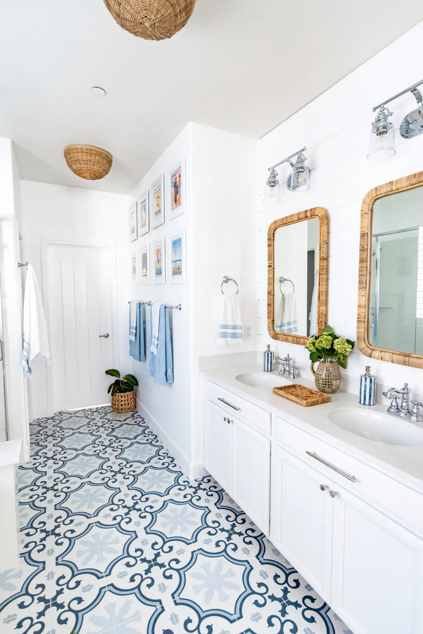 The way tile create patterns on your walls or floors can add so much interest and personality to your coastal bathroom design.