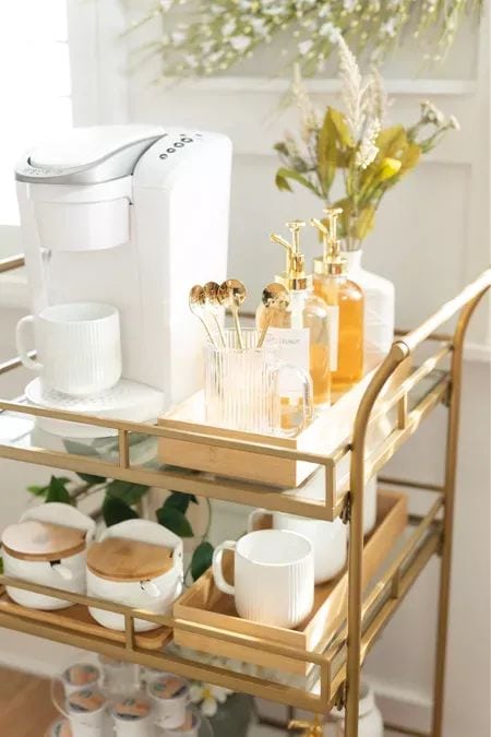 For renters or shared homes, a small cart with wheels lets you move your caffeine fix station wherever you need it most.