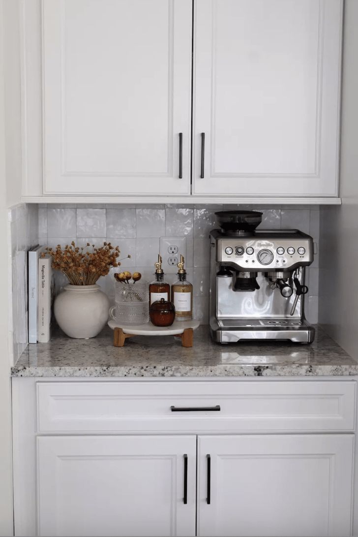 Place a small plant or fresh greenery nearby to bring some life and softness to your stylish brewing corner.