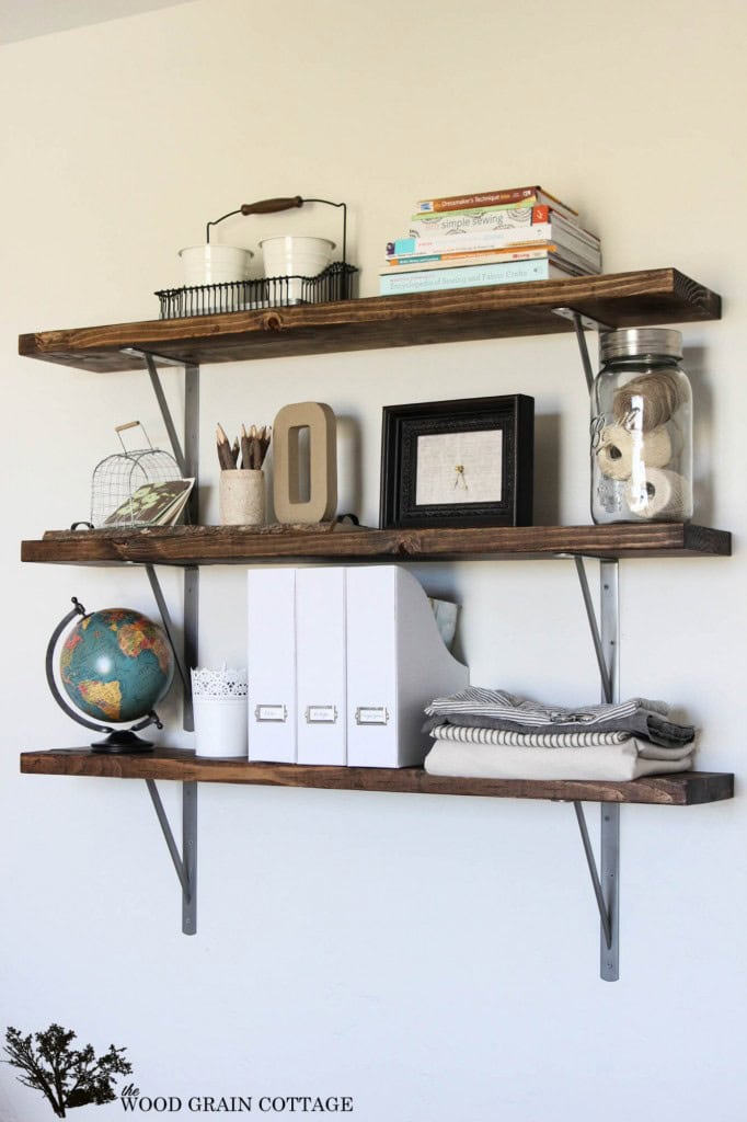 Floating shelves installed above your desk keep frequently used items within easy reach while freeing up your entire work surface so you actually have room to open your laptop and spread out papers.