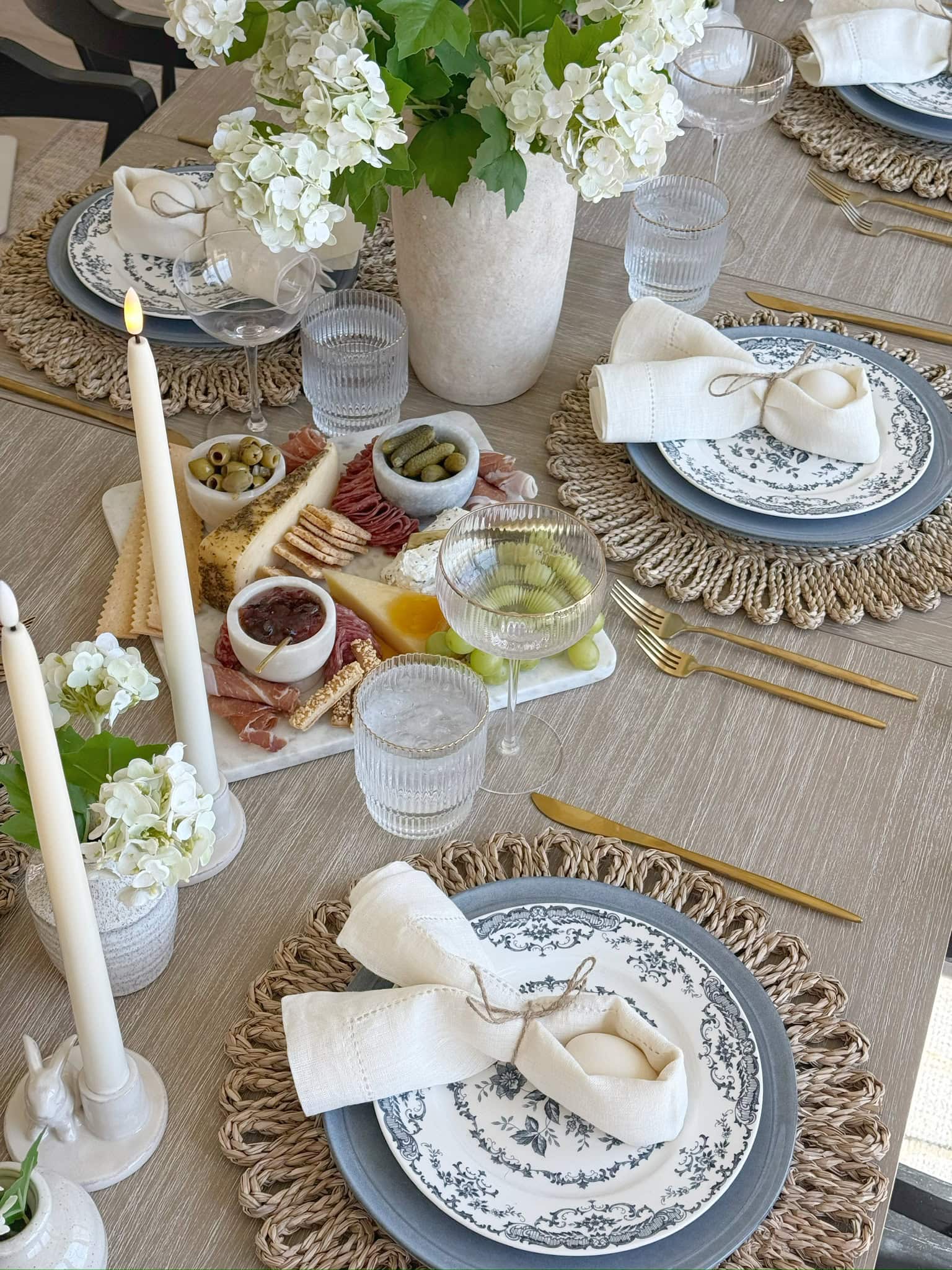 The goal is to create a table that feels intentional and inviting without stressing over perfection because spring styling should be fun and easygoing for you!