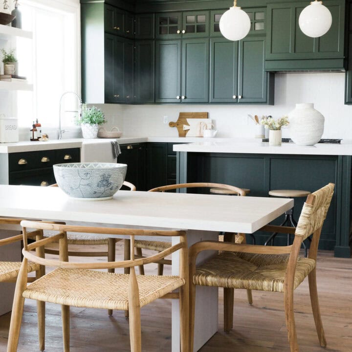 Here are some of my favorite home decor pieces to use in a kitchen that has dark green kitchen cabinets.