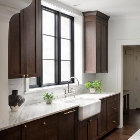 So yes, dark wood kitchen cabinet colors are very much in style! They just need the right pairing to feel fresh, rather than overwhelmed.