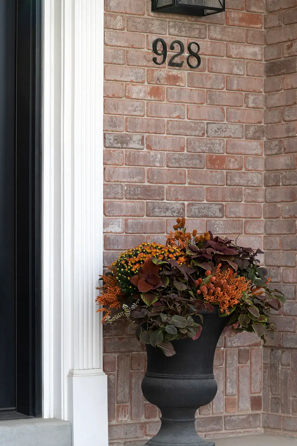 Mix in neutral fall planters for front porch filled with seasonal greenery and fall-inspired florals, which add freshness and color without overwhelming the overall look of your porch.
