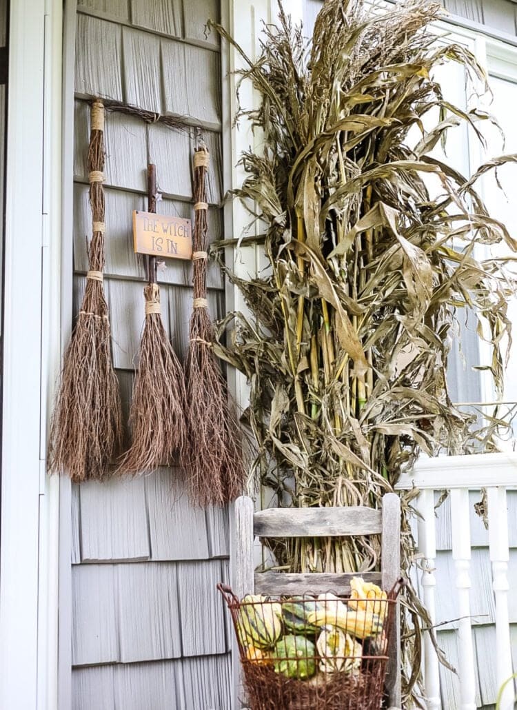 Decorate with corn stalks on each side of your doorway to frame the entrance, bringing vertical height that naturally draws attention to the entry.