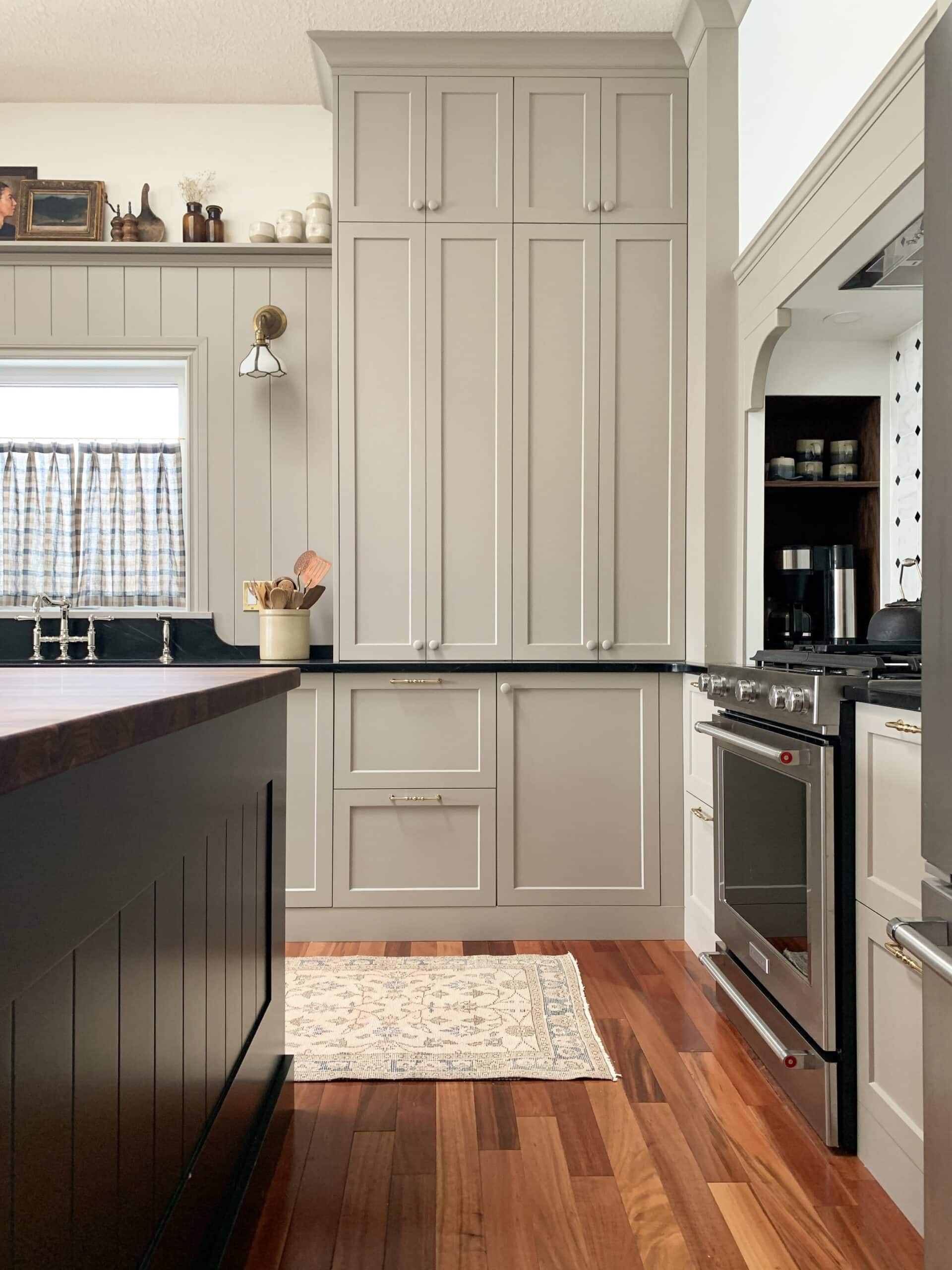 Your flooring and wall colors play a big role, too, especially when you’re combining green and taupe cabinet combinations or layering multiple natural tones.