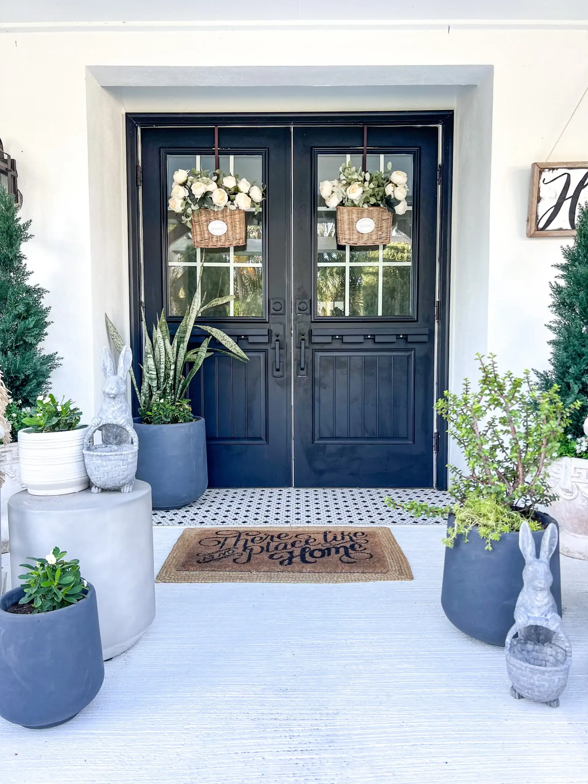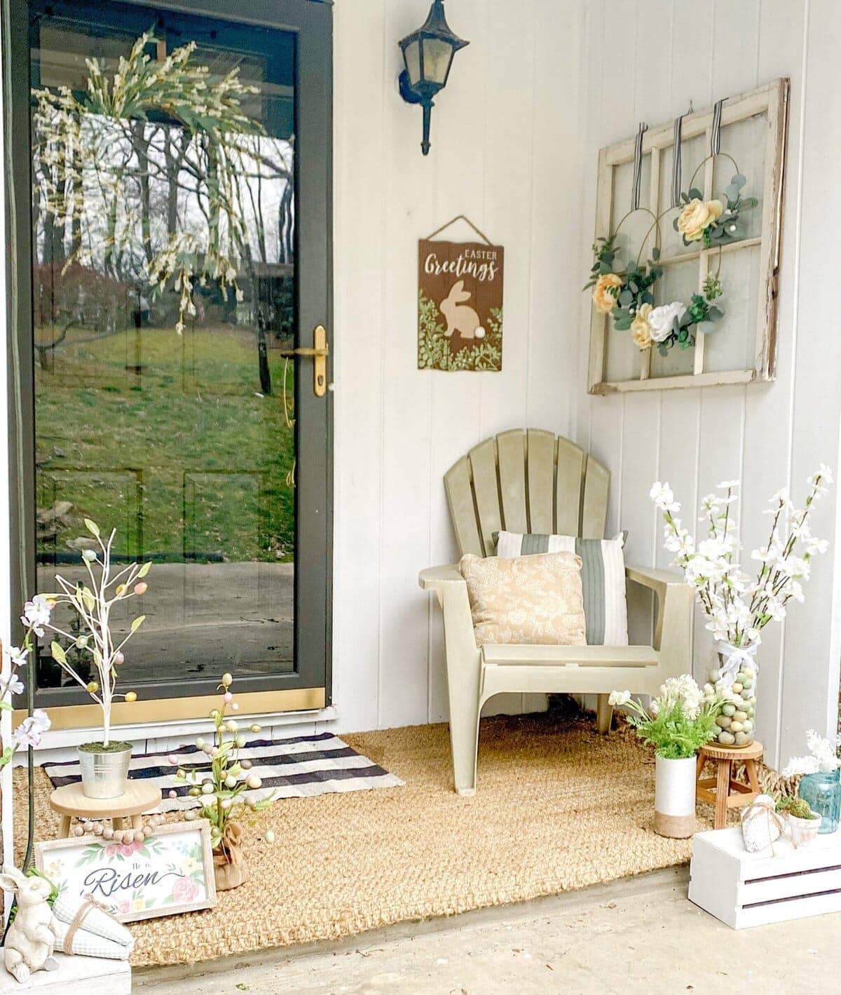 Some people like to transition slowly by starting with a spring door mat before adding more Easter-specific pieces as the holiday gets closer.