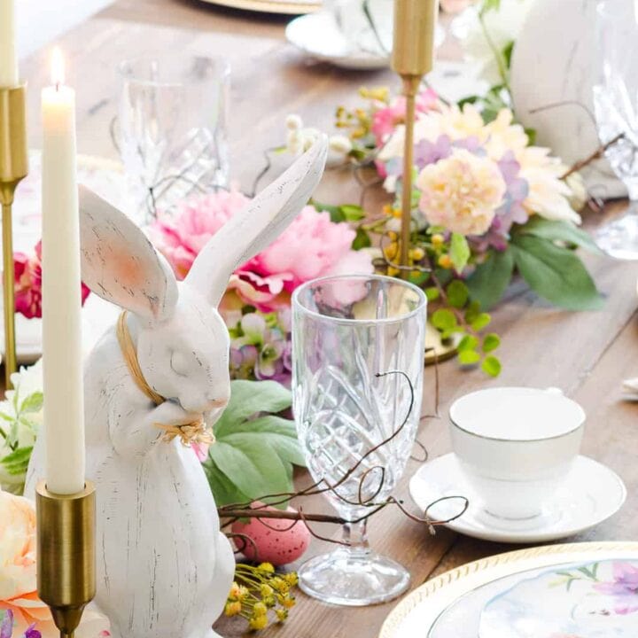 If you love a romantic and cozy Easter setting, this dreamy and elegant tablescape is definitely the one to try.