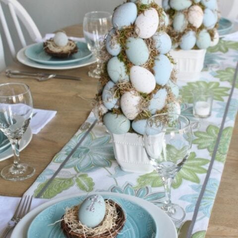 These little egg topiaries are absolute springtime perfection with soft blues, speckled eggs, and just the right amount of greenery.