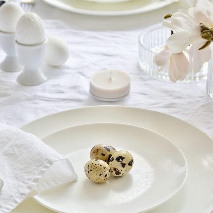 If you want to add a personal touch, place a little name card at each seat, bonus points if it’s shaped like an egg or tied to a mini wreath.