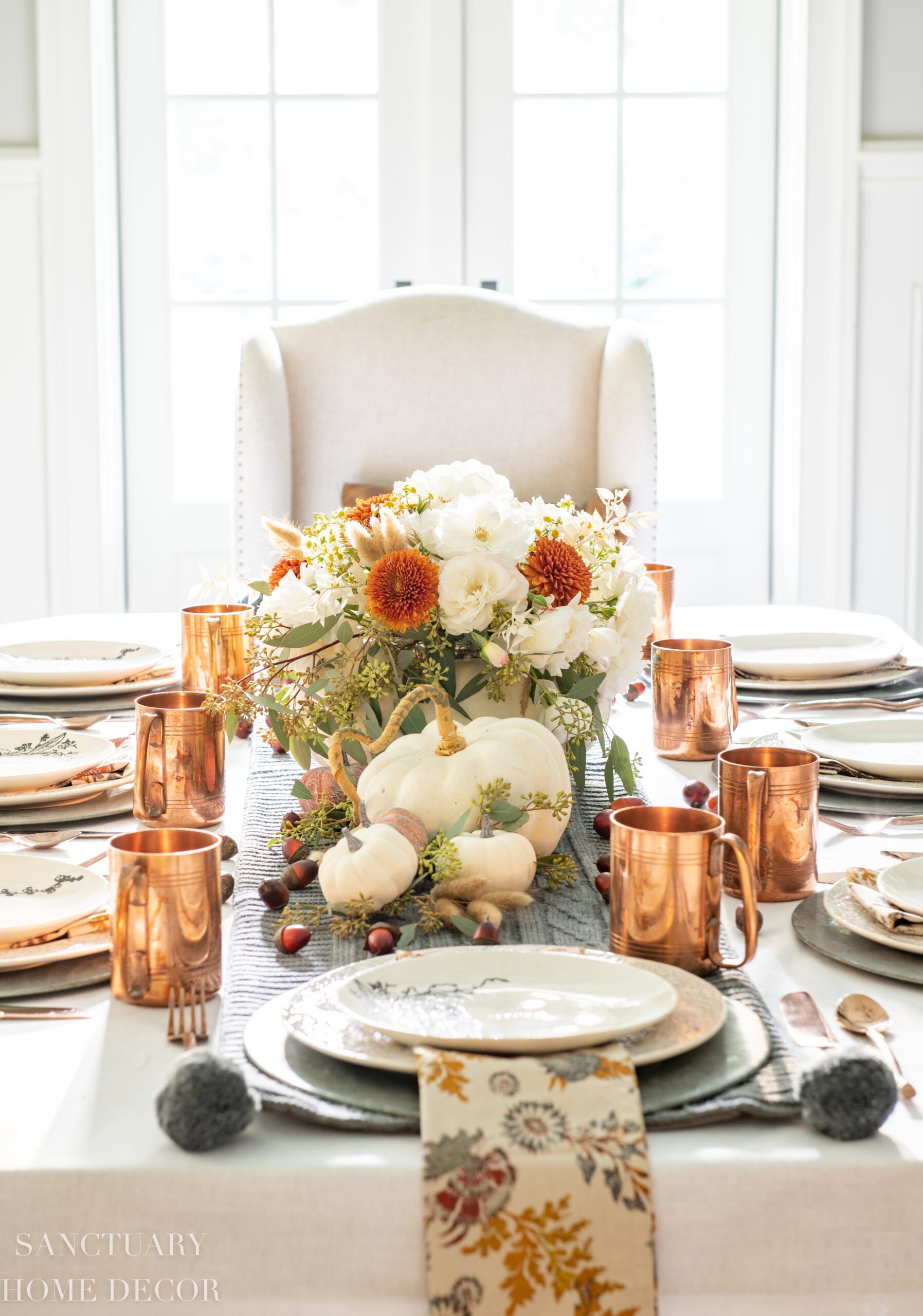 A Thanksgiving table centerpiece does not need to be complicated, and sometimes the simplest centerpiece idea creates the most memorable and beautiful Thanksgiving tablescape.