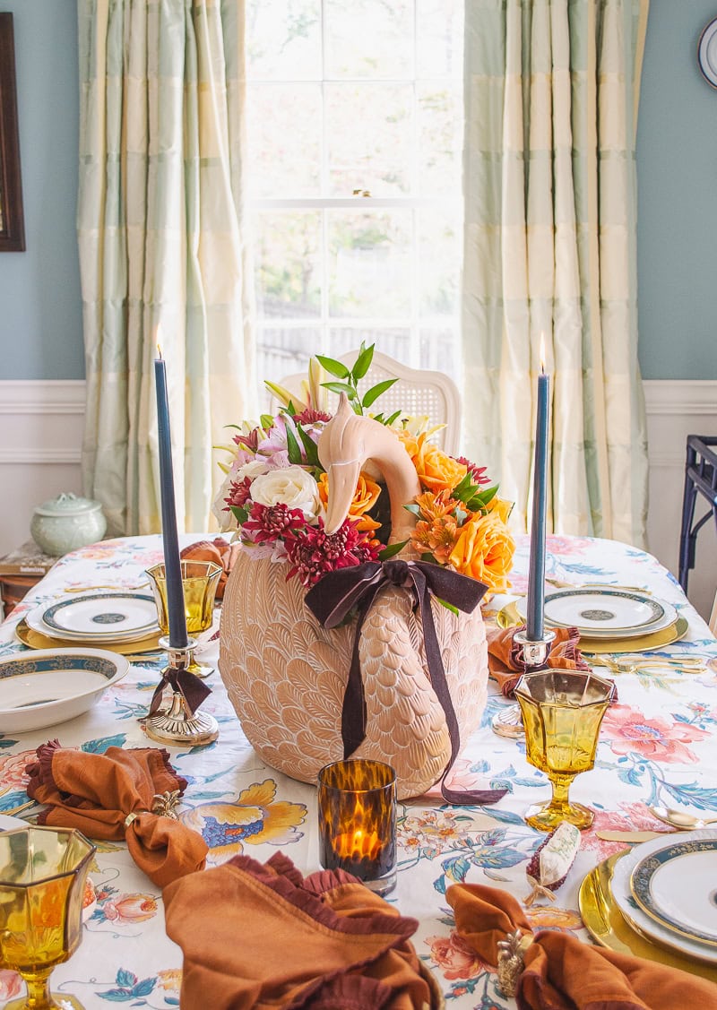 People also struggle with setting up a Thanksgiving centerpiece, worrying that it feels too large, too small, or doesn’t fit the Thanksgiving table setting.