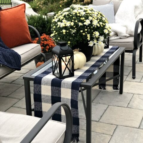Black and white with small touches of gold or copper also work well if you prefer a clean, classic fall patio look.