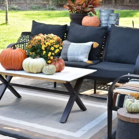 So, I’m going to share some of the best fall decorations that work well outdoors, bring in seasonal colors, and help turn your patio into a cozy hangout.