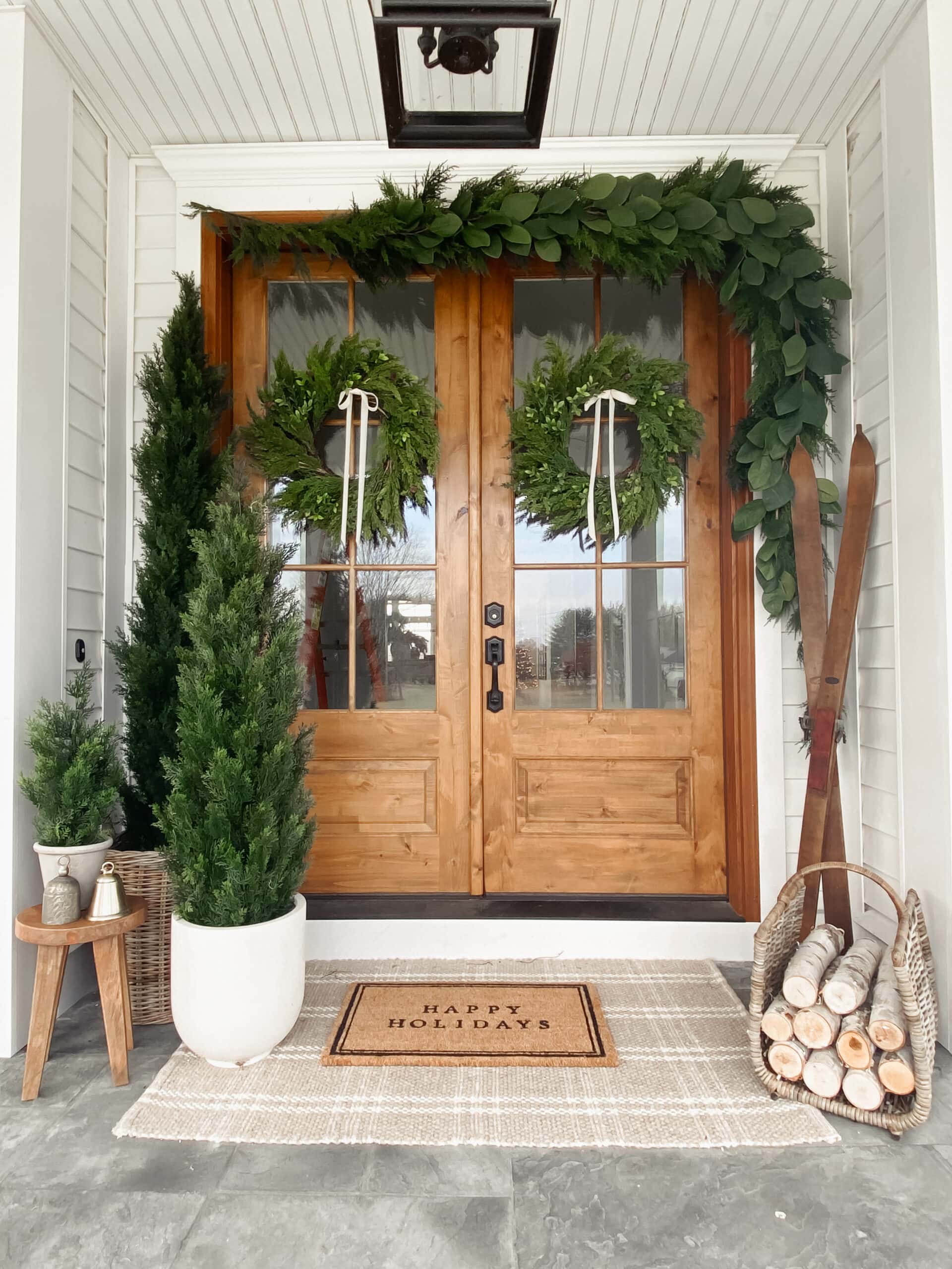 A classic winter wreath on your front door pulls everything together and helps make your whole porch feel ready for the season ahead.