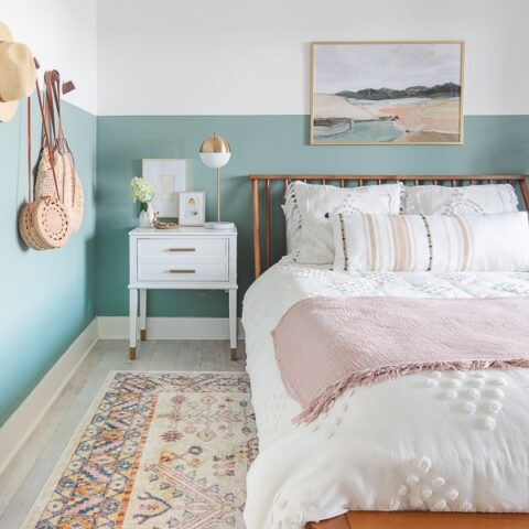 Complete the look with a patterned rug and simple wall art for a laid-back, stylish retreat that feels fresh and inviting.