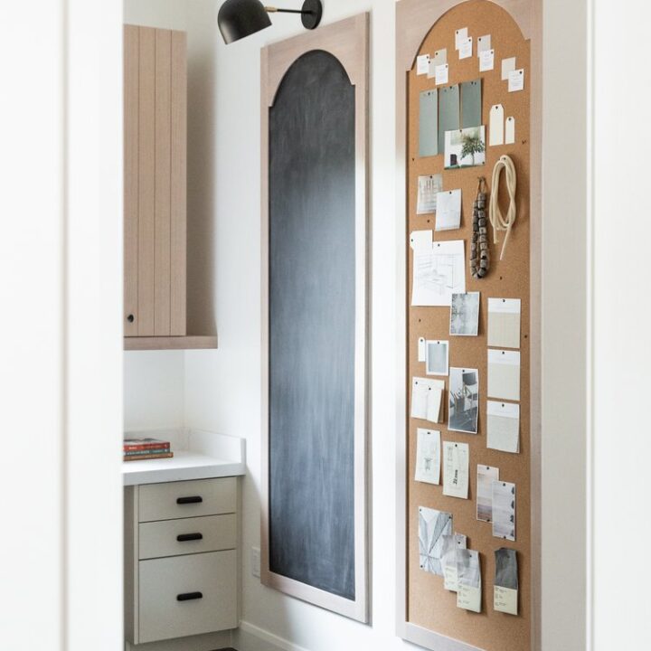 Two oversized wall boards (one chalkboard and one corkboard) create a smart zone for ideas and reminders.