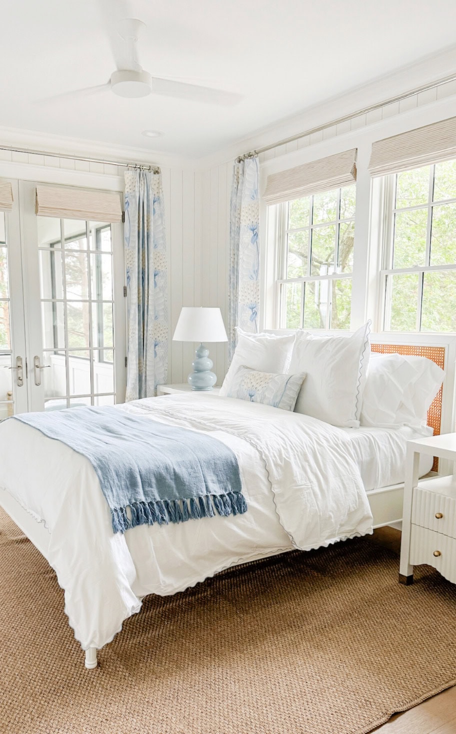 One tip on how to layer a bed for summer is to keep things light with breathable cotton sheets and a thin coverlet paired with a lightweight duvet insert for just enough comfort.