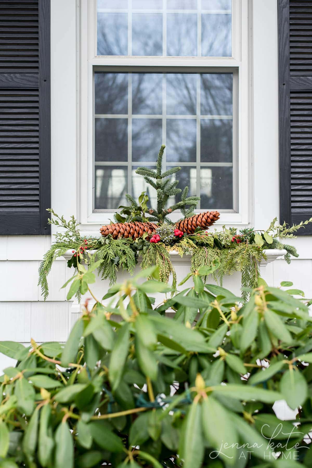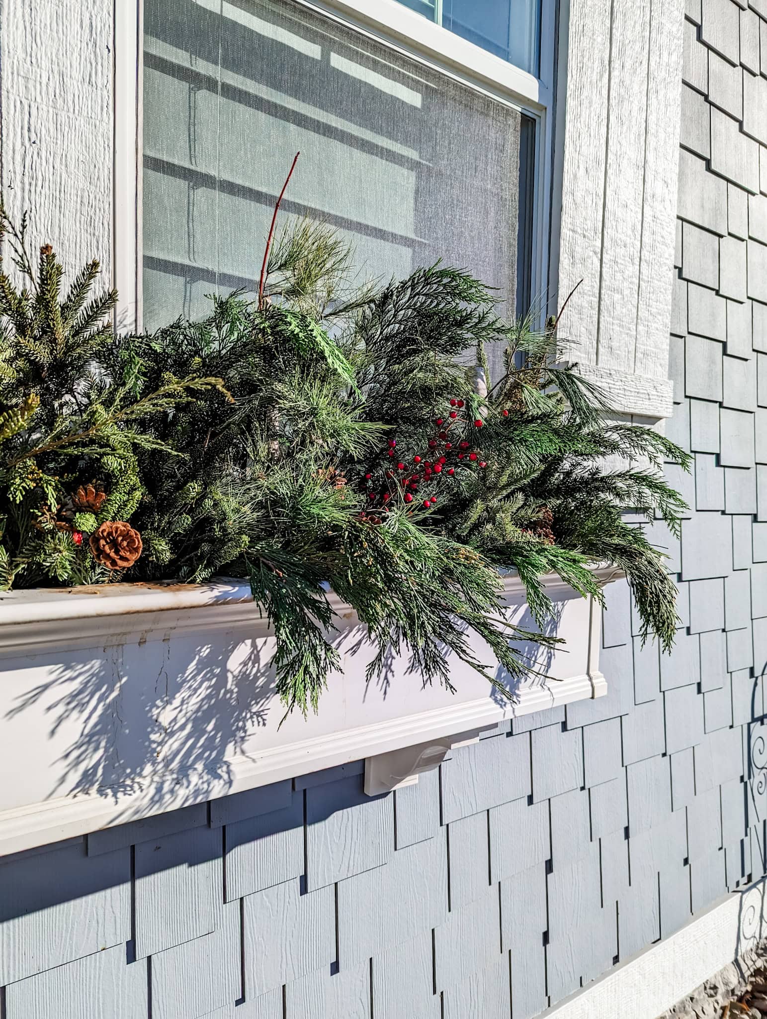 There’s something special about seeing pine cones and greenery in a planter box while sipping something warm near the window.