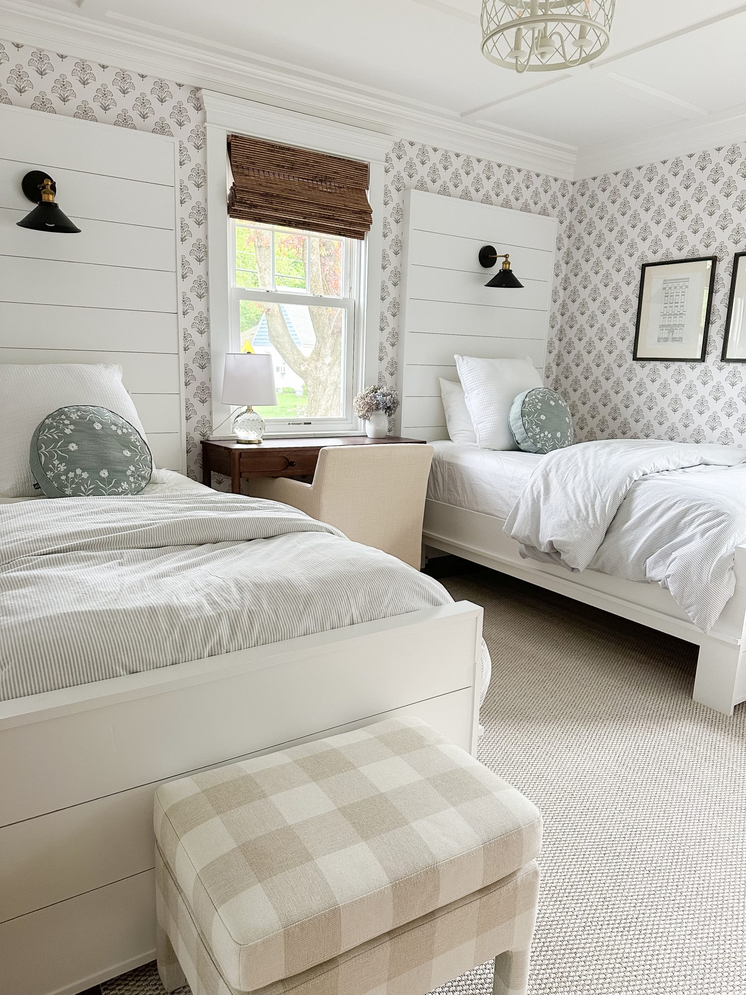 Twin beds can be tricky because there’s less room to work with, and every piece you add really needs to count for something.