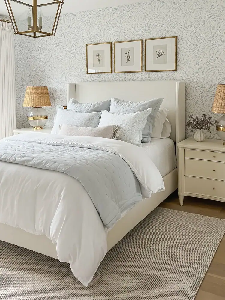 Mix solid colors with soft patterns like stripes or small geometric shapes to keep your bed looking fresh but calm.
