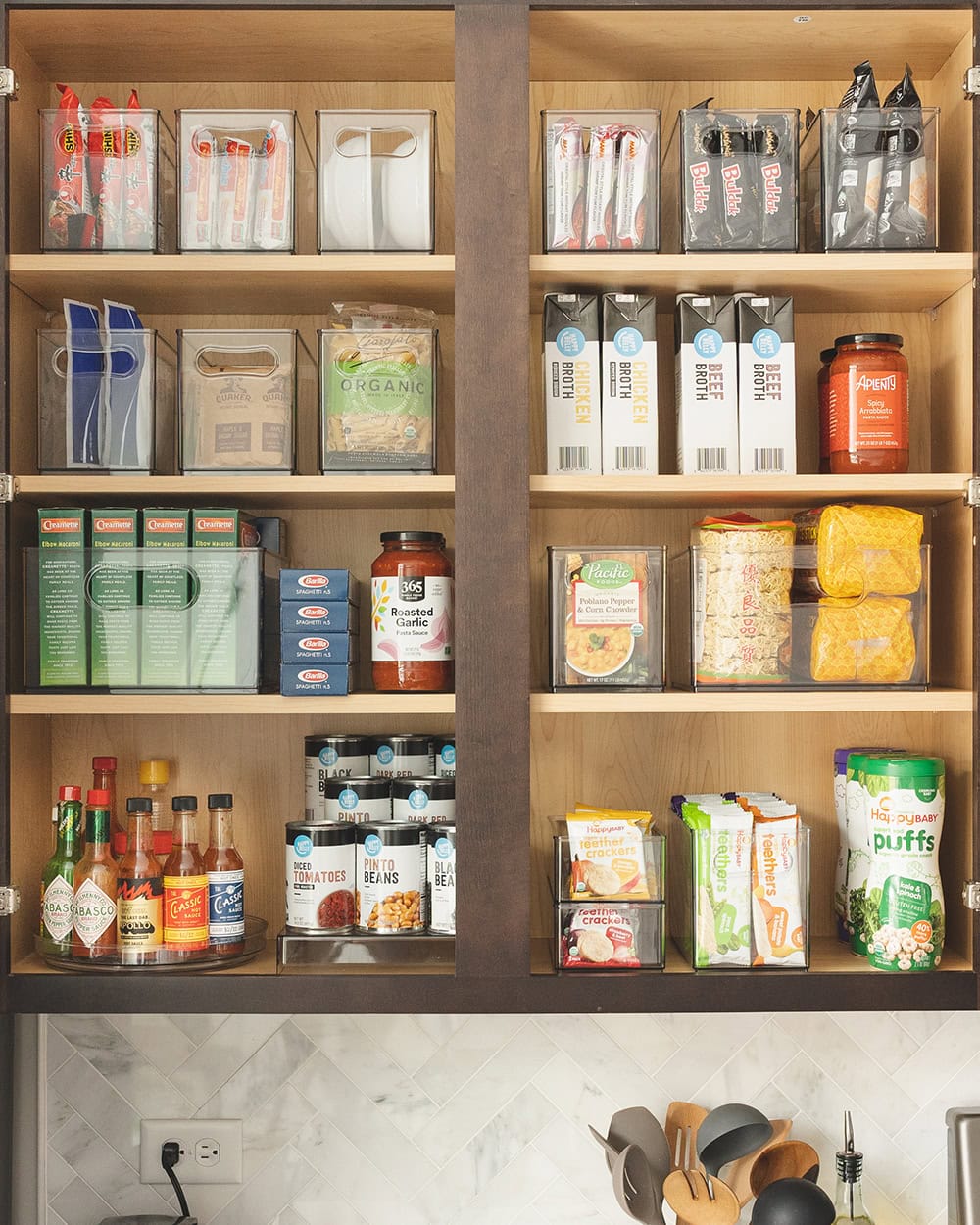 An organized kitchen cabinet makes it so much easier to see what ingredients or tools you already have at home.