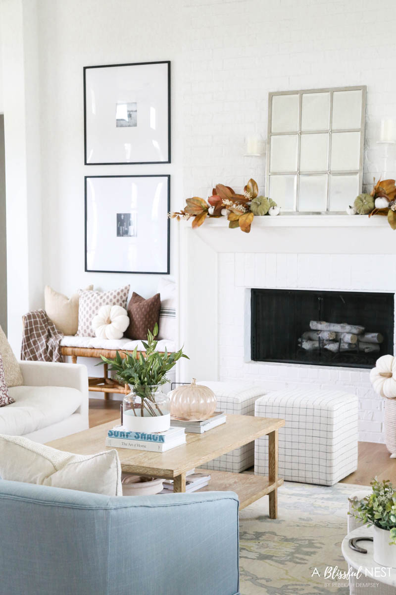 A well-decorated mantel ties the entire room together, making the whole space feel ready for fall in the easiest way.