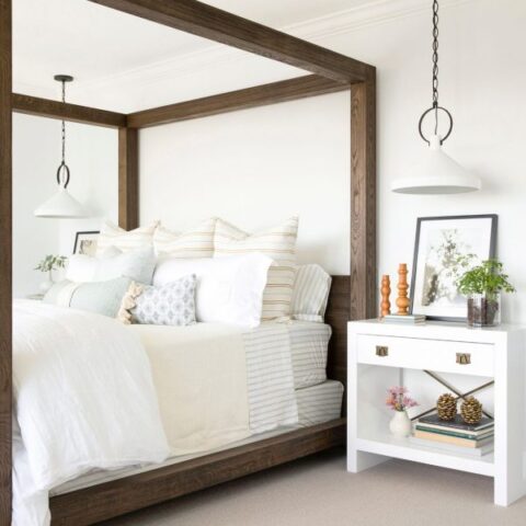 Whitewashed nightstands and dressers also help tie the look together while keeping things neutral and easy to layer.