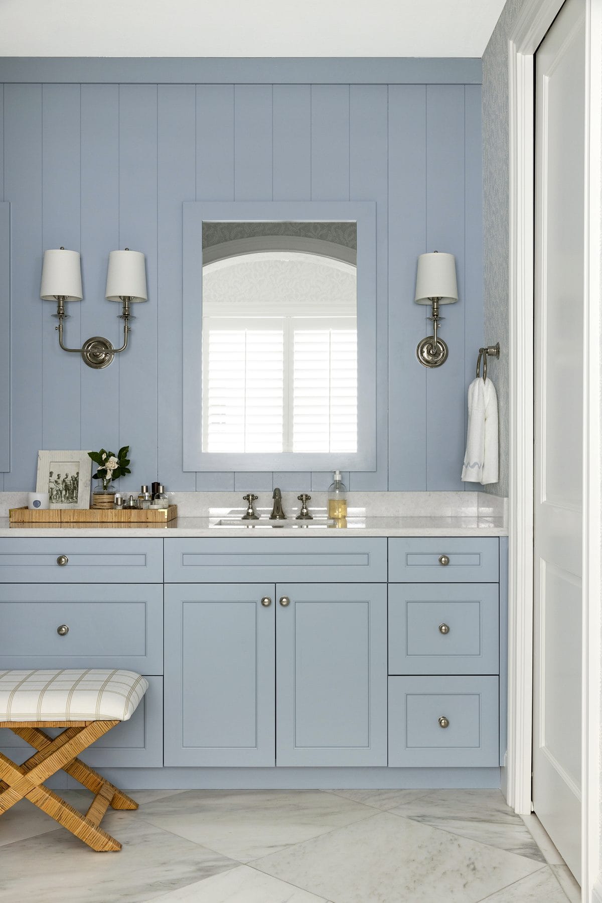 Painting a vanity in soft tones like white, gray, or muted blue gives a clean look that works well with a neutral color palette.